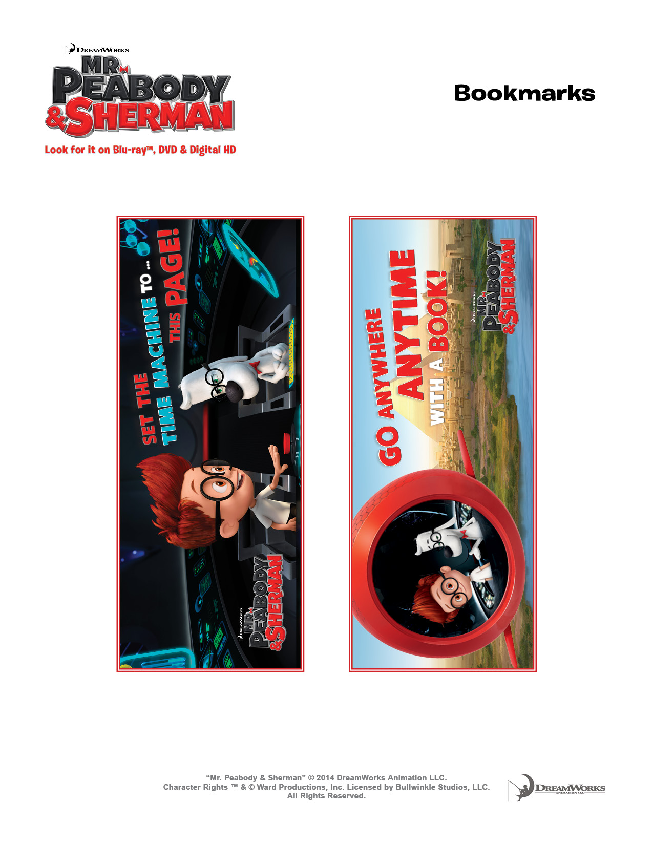 * Free Printable Mr. Peabody & Sherman Bookmarks