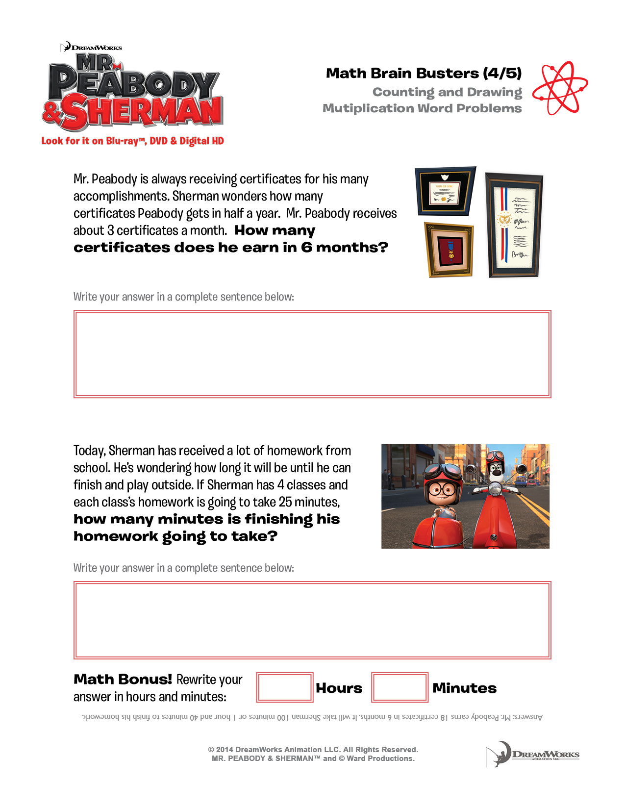 Directed by Rob Minkoff (THE LION KING, STUART LITTLE) and from the team behind family favorite franchises THE CROODS and HOW TO TRAIN YOUR DRAGON, MR. PEABODY & SHERMAN is “fun” and “fast moving” (A.O. Scott, The New York Times) and features hilarious performances from an incredible voice cast of popular stars including Ty Burrell, Ariel Winter, Stephen Colbert, Leslie Mann, Max Charles, Patrick Warburton and Allison Janney.