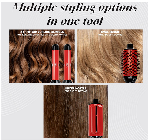 You can quickly and easily switch out the attachments to volumize, curl or dry your hair. There’s nothing complicated with this styling tool. The included oval styling brush is one of my favorites to use when I’m adding volume for my more casual days. The air curling barrels are perfect for when I want to add waves or curls. The dryer nozzle is absolutely fantastic! It gives me concentrated, non-damaging heat which allows me to blow-dry my hair in half the time that it used to take!