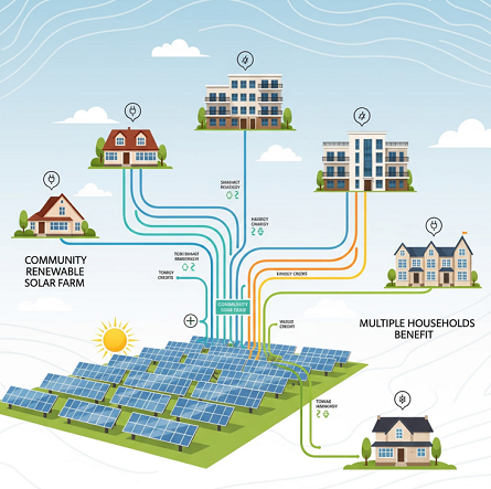 Not every household has a sun-friendly roof or property rights to install panels. That’s where community solar steps in. Through online subscription services, renters and condo dwellers can support solar farms and receive credits on their utility bills.