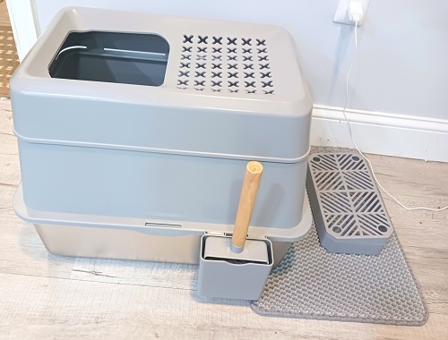 This litter box comes with all of the accessories that you’ll need so everything will match and look nice together. There’s a 2-layer litter mat, a filter pedal and a pocket on the side of the box to hold the included litter scooper. The way that it’s designed…everything is contained and kept neat. That’s very important if the box is kept in an area where other people can easily see it. Not only do you not want odors seeping out of it…but you want it to always look neat and clean.