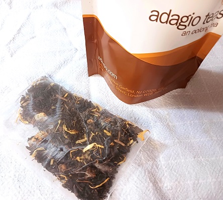 For this review we received a bag of the Peach Oolong Iced Tea by Adagio Teas. This package contains 6 bags. Each bag will make 1 quart of peach iced tea. It can be steeped hot and then refrigerated overnight until cold.