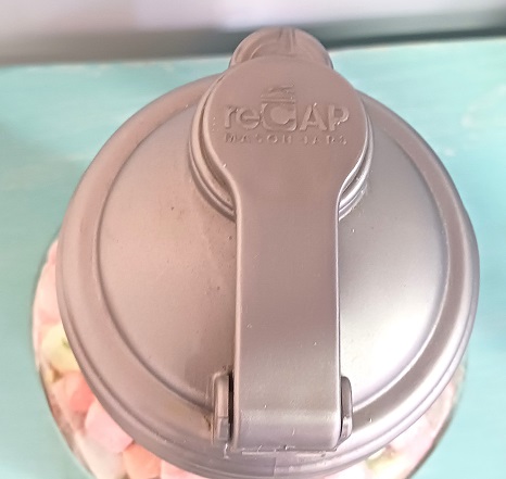 I purchased a bunch of the plastic ReCap mason jar flip-top lids and pour spout lids from Amazon. These caps and lids are reusable, so they’re a one-time investment. A lot of them will fit on top of various other type’s of jars like mayonnaise, pasta sauce, sweet sauce, pickle jars, etc. Just depends on the manufacturer of the jar and size. With that said, they do fit on your classic pint and quart size glass mason jars that are typically used for home canning.