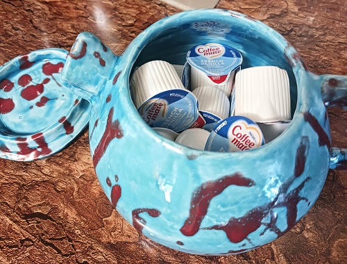 Handcrafted Pottery Teapot to Organize Items on the Coffee Bar